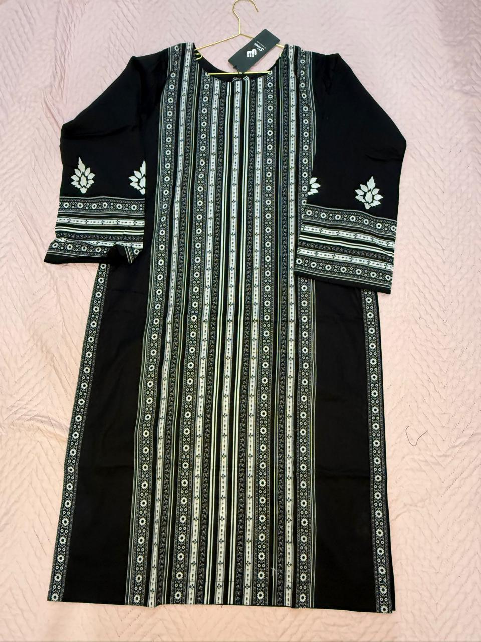 Hit Article Original Brand by Shaista Lodhi Monochrome Digital Printed 3pc Stitched Lawn fabric Chiffon Dupatta Long Shirt