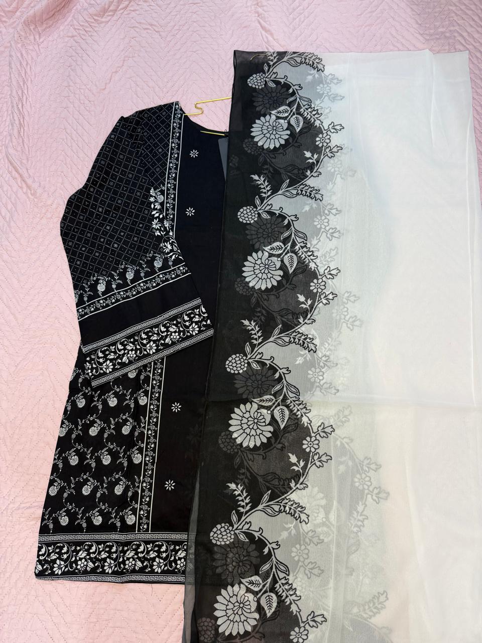 Hit Article Original Brand by Shaista Lodhi Monochrome Digital Printed 3pc Stitched Lawn fabric Chiffon Dupatta Medium Length Shirt